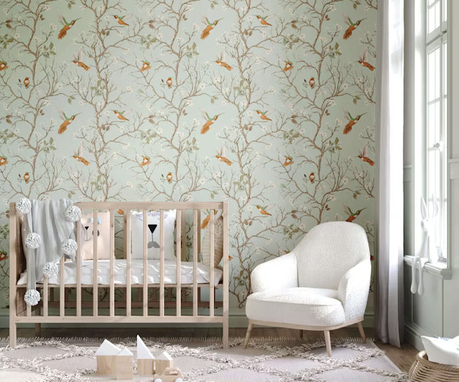 To achieve an authentic cottagecore aesthetic, use this tree and bird wallpaper to ground a room in a sense of lived in history and rural comfort. Position the pattern as the focal point in a reading nook or a traditional bedroom to evoke the feeling of an heirloom garden brought indoors. Complement the design with reclaimed wood furniture and vintage textiles to enhance the character of the space. This approach transforms a simple wall into a restorative pocket of nature, allowing the botanical motifs to provide a sense of mental clarity and traditional elegance within the home.